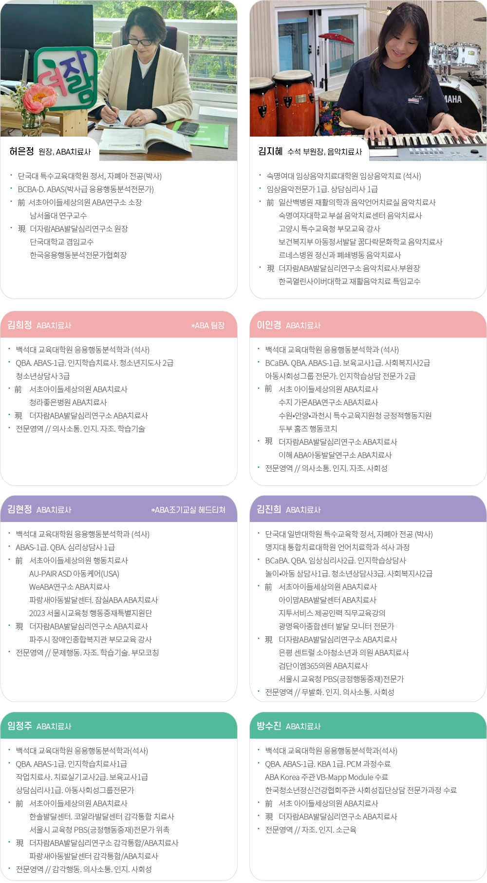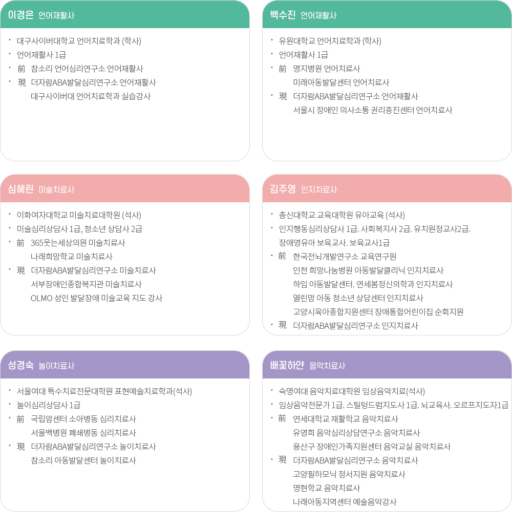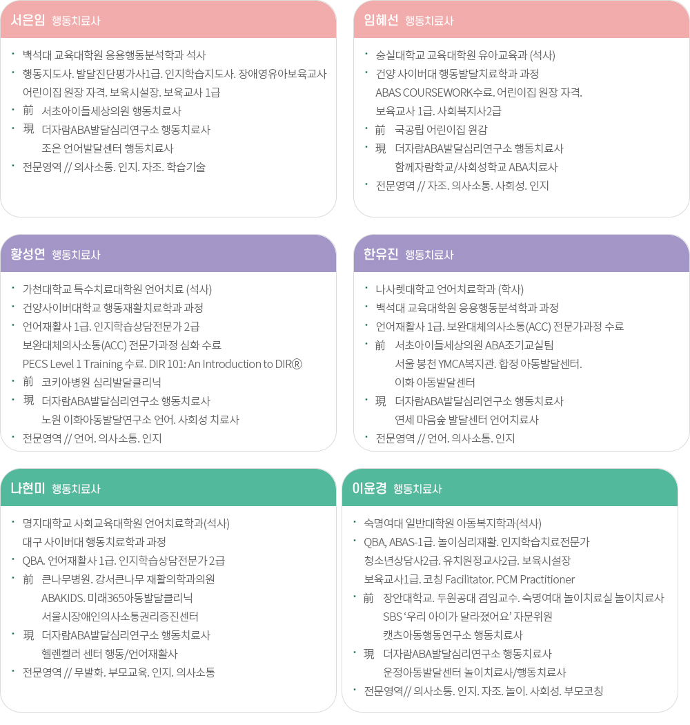 더자람 ABA 발달심리연구소 치료사를 소개합니다.