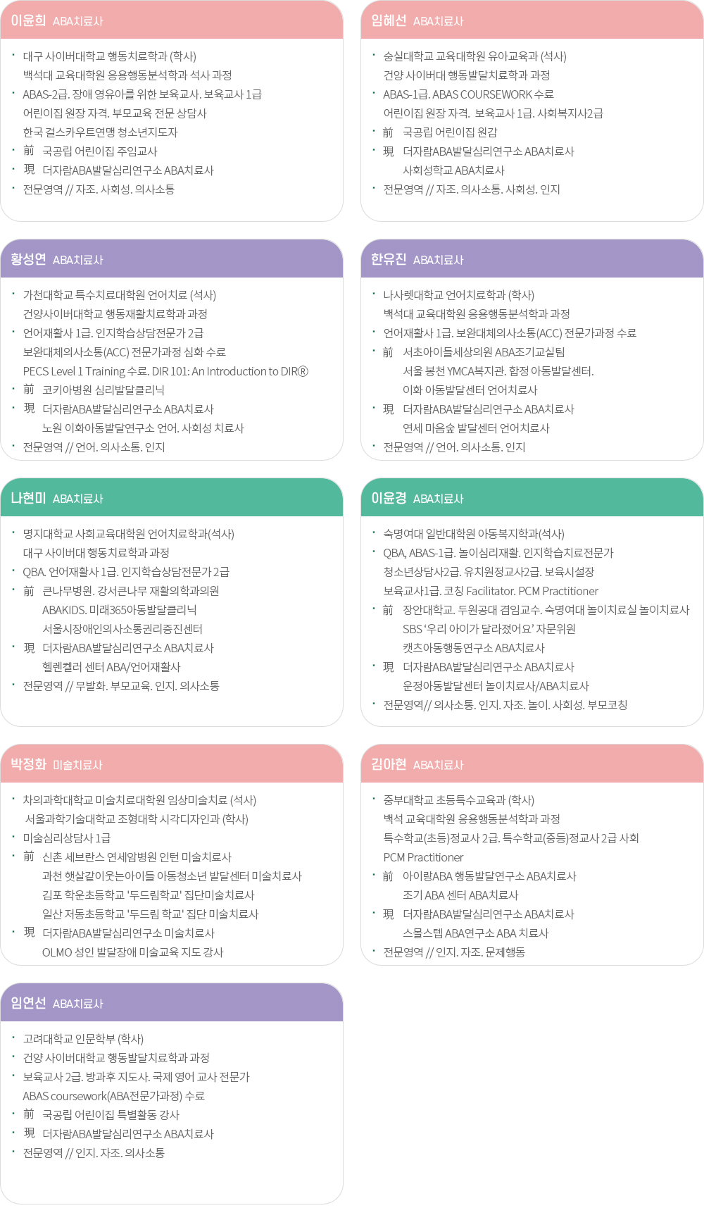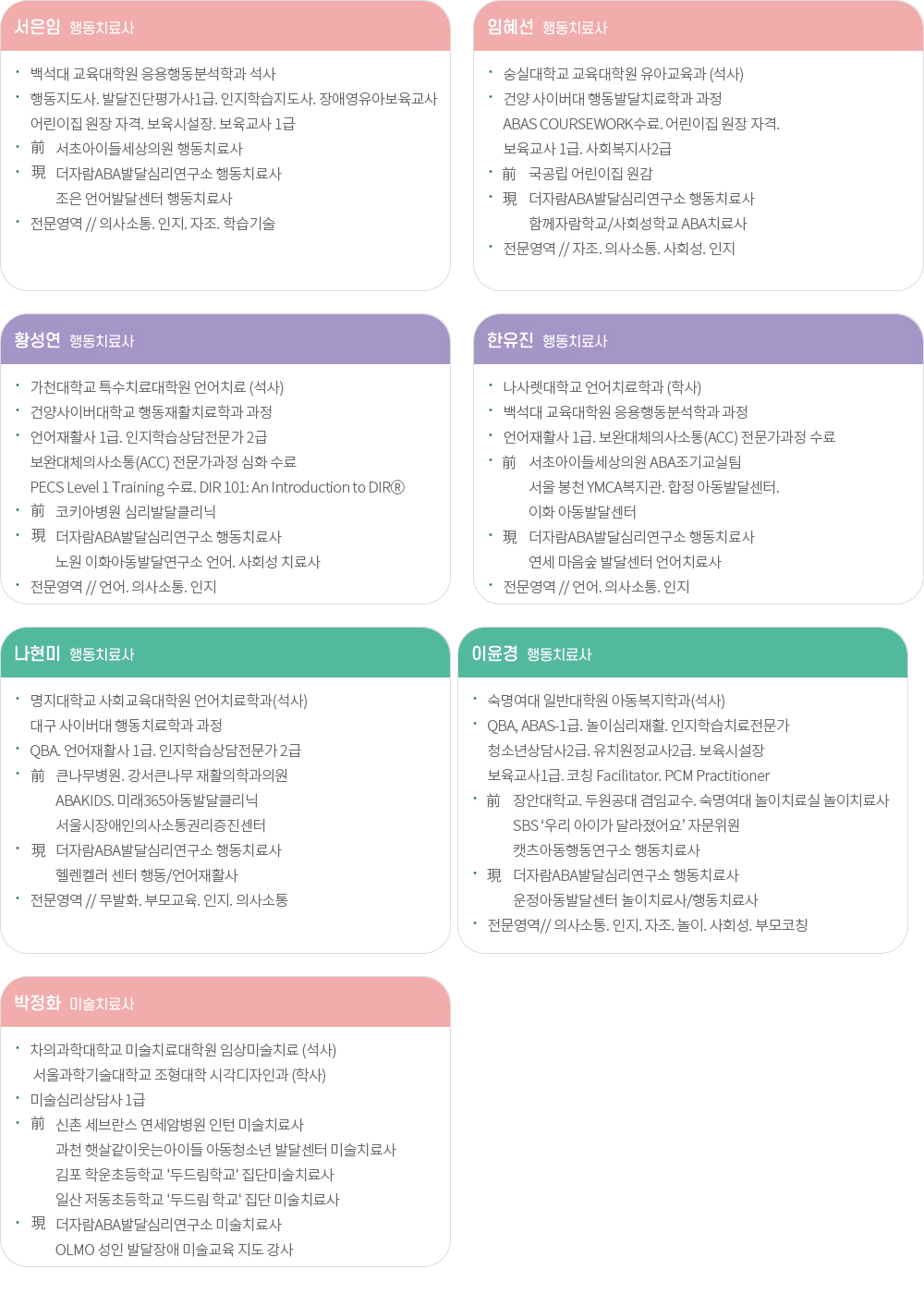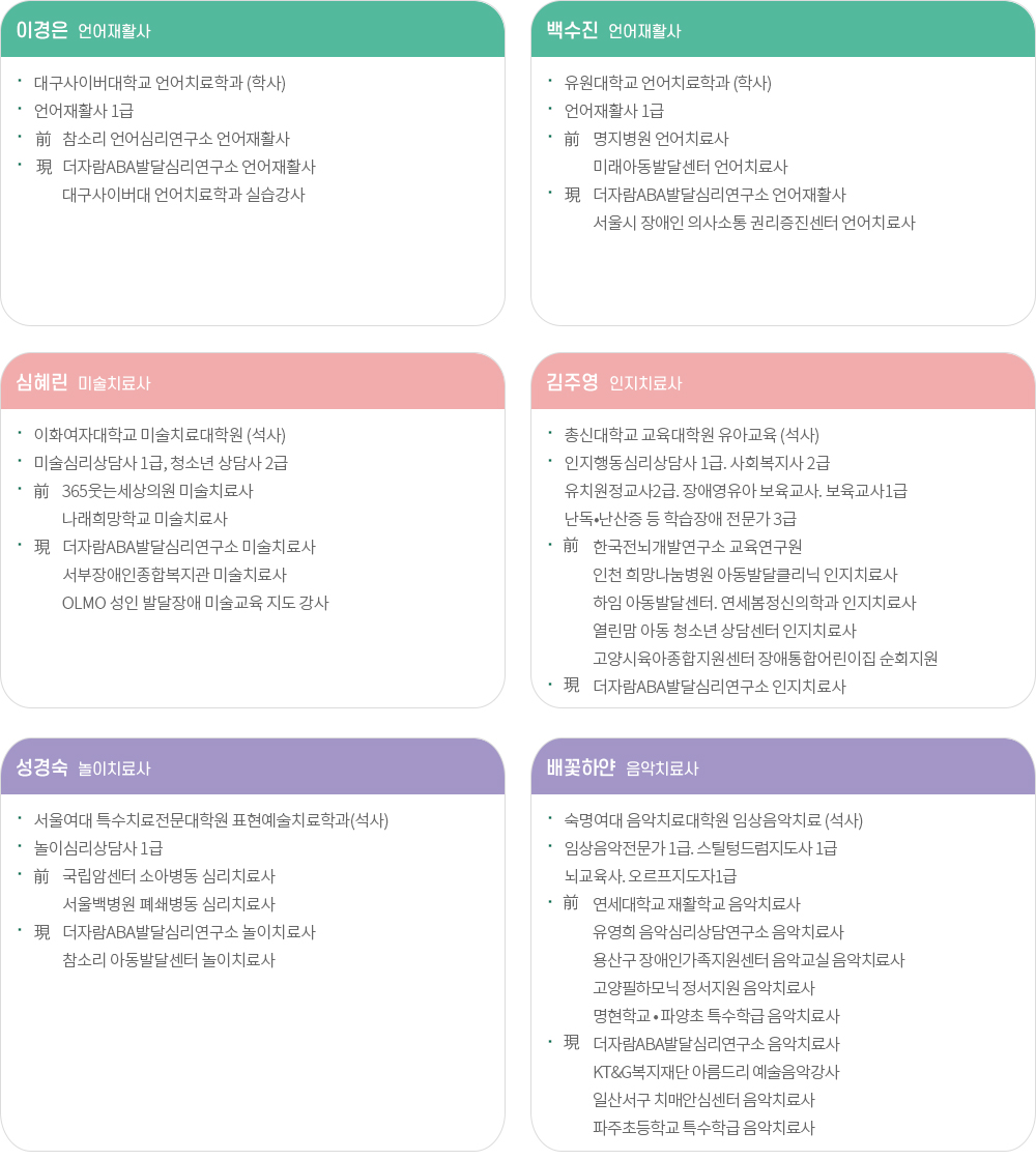 더자람 ABA 발달심리연구소 치료사를 소개합니다.